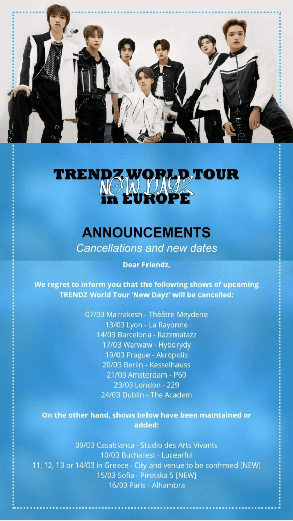 À partir du 3 mars 2024, découvrez Han Kook, Ha Vit, Leon, Yoon Woo, ra.L, Eun Il et Ye Chan pendant leur tournée : « TRENDZ WORLD TOUR [NEW DAYZ] in EUROPE ».