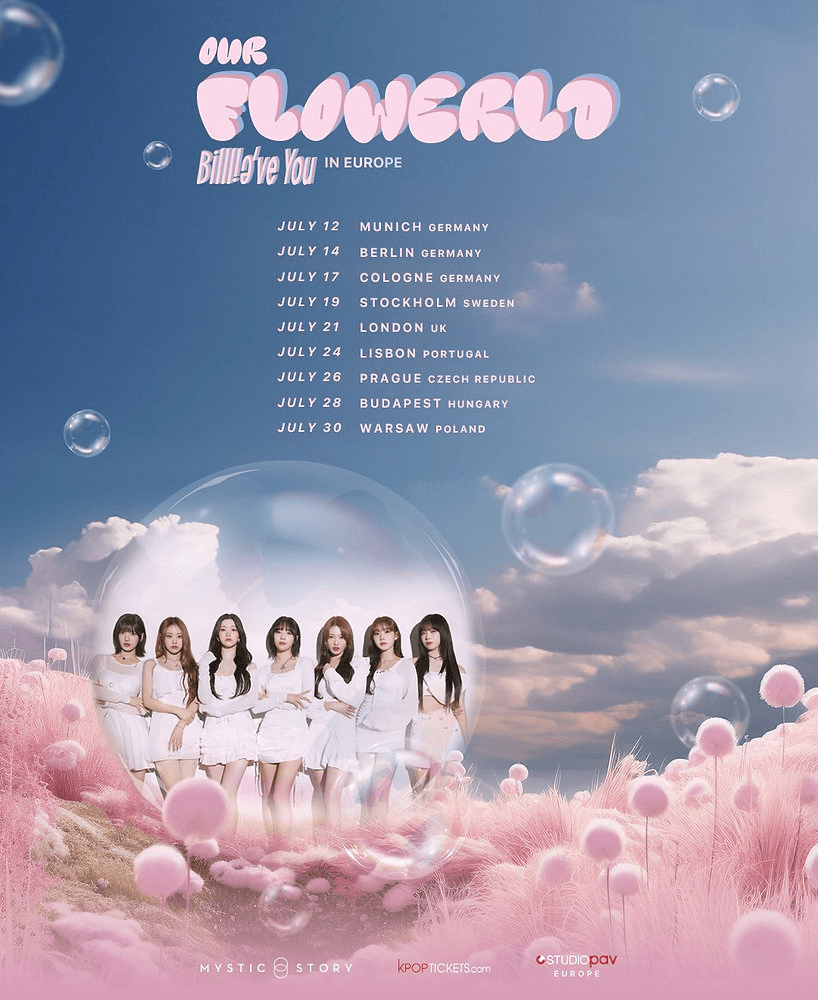 Comme le flot des pétales qui s’envolent, Billlie parcourront 9 villes d’Europe du 12 au 30 Juillet en vent de fraicheur avec leur Our Flowerld Tour. Retrouvez les à :