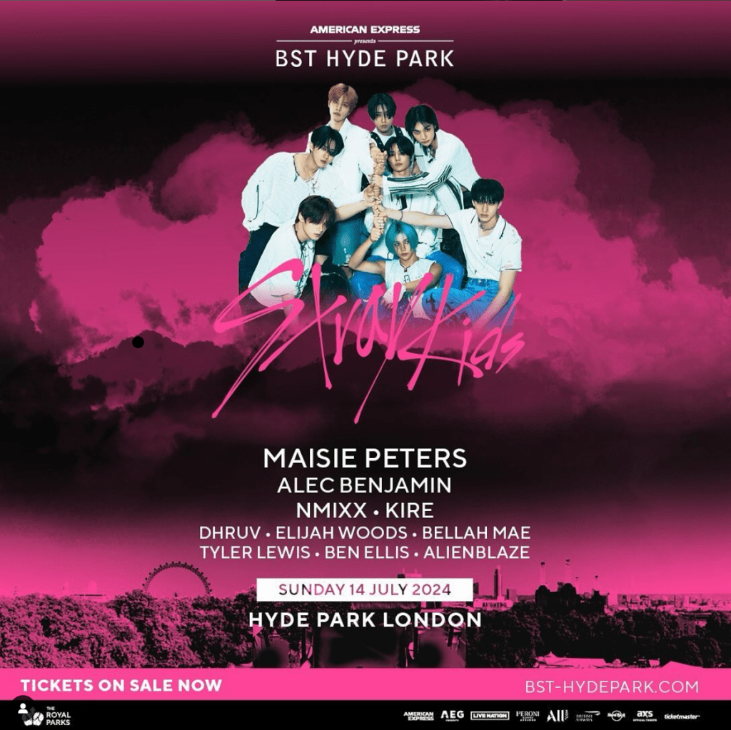 A l’occasion du BST Hyde Park, Stray Kids et Nmixx performeront le 14 Juillet au Hyde Park à Londres parmi 9 autres artistes.
