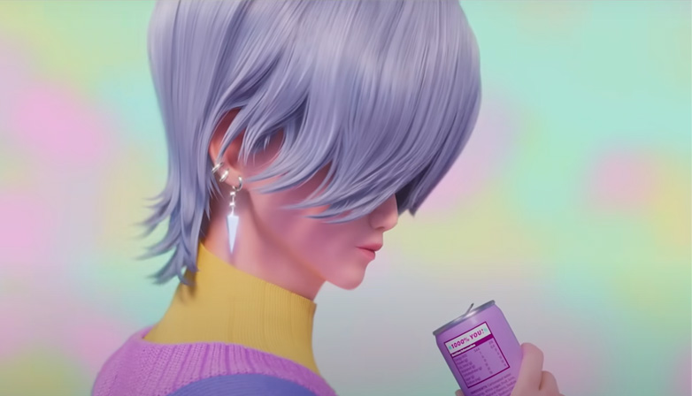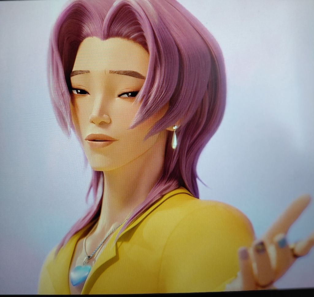 Le mystère incarné à l’état pur. Caché derrière d’imposants cheveux violets, il ne laisse rien transparaître, inspiré par les archétypes d’animés. C’est une figure volontairement énigmatique, propice à l’identification projectionnelle des fans.