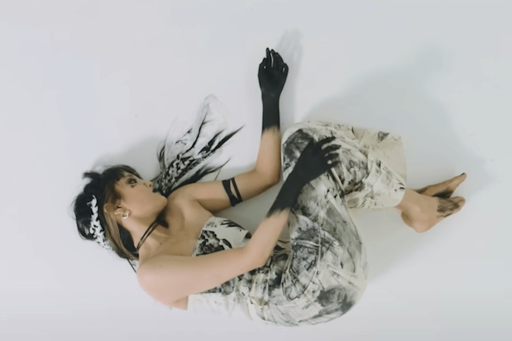 Cette esthétique, entre renaissance et mutation, traduit la métaphore centrale du clip : affronter son double pour renaître plus forte, plus entière. Un Armageddon intérieur où l’on fusionne avec toutes nos versions en même temps. Pour un costume inspiré de l’univers <Armageddon>, mettez une robe de couleur unie avec un effet drapé. Pour les accessoires en forme de corail vous pouvez vous-même les créer en reproduisant les formes avec un pistolet à colle sur un papier cuisson. Avec quelques rafistolages pour les ongles et une touche de poudre dorée sur la peau, vous voilà transformé en une divinité cybernétique en un rien de temps.