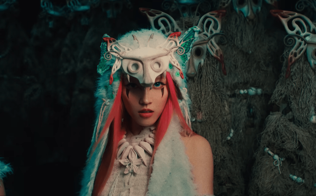 XG est connus pour son esthétique très travaillée, ses concepts fantastiques et ses visuels très fashion. Dans <Howling>, le groupe explore une esthétique plus sauvage et mystique, entre conte initiatique et fable futuriste. Les membres incarnent des figures mi-humaines, mi-divines, dans un univers où nature et technologie s’affrontent et s’embrassent à la fois. Leur look mêle cuir, fourrure synthétique et métal, rappelant l’héroïne de « Princesse Mononoké« , cette jeune fille-louve d’un conte japonais, symbole de liberté et de révolte. XG reprend cette dualité entre force instinctive et beauté spirituelle, mais la transpose dans une vision urbaine et avant-gardiste.